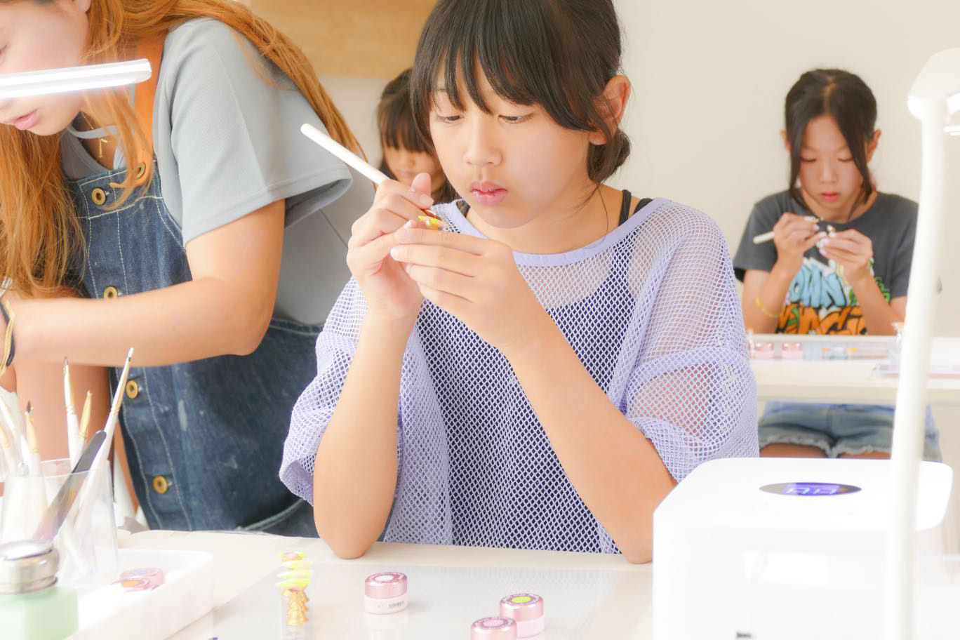 ネイル塾ViViは、小1から中3までを対象にしたこれまでに無かったネイルの習い事です。子供の持つ可能性を引き出すための工夫がたくさん詰まっています。ネイルチップを使ったアート練習・作品制作をベースに行います。